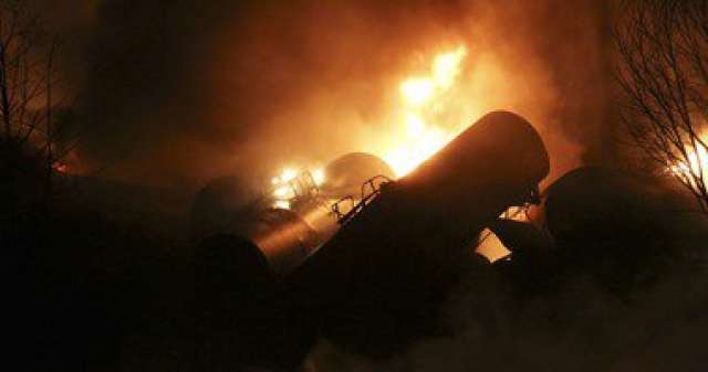 اشتعال النيران فى قطار محمل بالبترول الخام بعد خروجه عن مساره بكندا