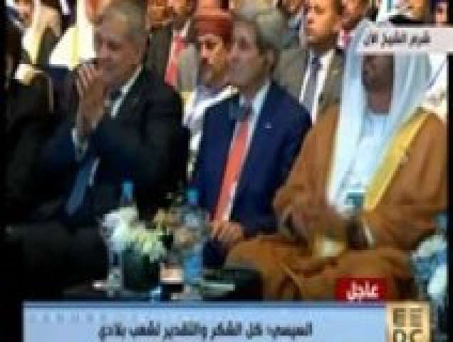 رصدت كاميرات البث المباشر لفعاليات المؤتمر الاقتصادي لحظة وقوف رئيس الخارجية الأمريكية جون كيري لتحية الرئيس عبدالفتاح السيسي عقب إلقائه الكلمة الافتتاحية للمؤتمر.
