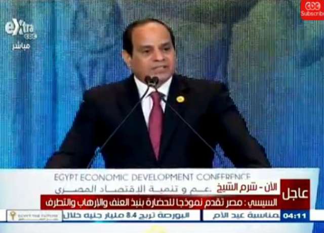 يلقى الرئيس عبد الفتاح السيسي كلمة بالمؤتمر الاقتصادى لدعم وتنمة مصر بشرم الشيخ في الساعة 12 والنصف ظهرا بالقاعة الرئيسية للمؤتمر.