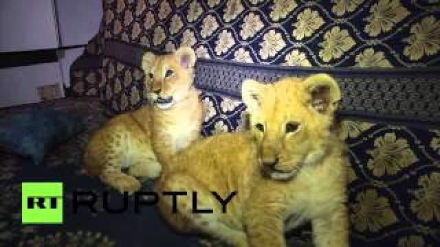ويعيش الشبلان داخل المنزل سوية مع أفراد العائلة وينامان جنبًا إلى جنب معهم كل ليلة .
