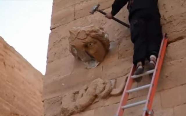 ويظهر الفيديو، الذى يبلغ مدته 7 دقائق، مقاتلى التنظيم وهم يدمرون آثار المدينة مستخدمين المطارق الثقيلة والبنادق.