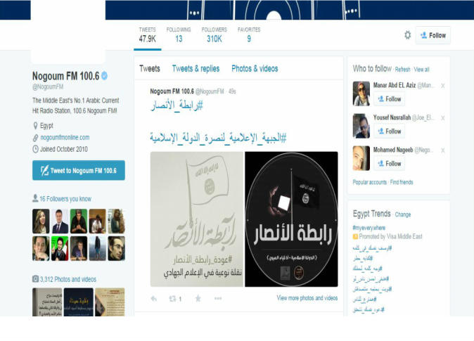 بالصور.. داعش تستولى على حساب «نجوم إف إم» بتويتر