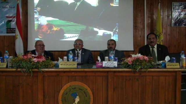 كرم الدكتور جمال أبو المجد القائم بأعمال رئيس جامعة المنيا وبحضور الدكتور أحمد نعمان نائب رئيس الجامعة لشئون الطلاب والدكتور حصافى محمد كمال عميد كلية الزراعة والدكتور عادل عبد الله وكيل الكلية لشئون الطلاب وأعضاء هيئة التدريس والطلاب المشاركين فى أعمال المؤتمر الدولى الثانى للزراعة والرى بدول حوض النيل الذى نظمته الكلية خلال الفترة من 22 إلى 25 مارس 2015.