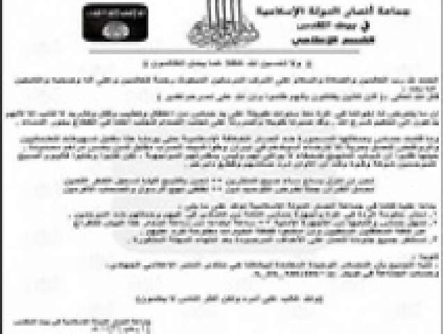 أكدت جماعة "أنصار الدولة الإسلامية في بيت المقدس" المتشددة، في بيان صادر عنها اليوم، "أنها تمهل حركة حماس 72ساعة ابتداء من ساعة إصدار البيان مساء أمس الأحد، للإفراج عن كافة معتقلي الجماعة، وإن امتنعت فكافة الخيارات مفتوحة للرد عليها".