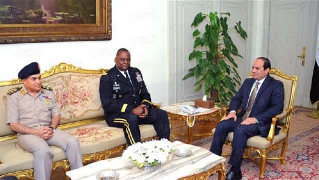 اِستقبل الرئيس عبد الفتاح السيسي اليوم الفريق أول لويد أوستن قائد القيادة المركزية الأمريكية، بحضور الفريق أول صدقي صبحي وزير الدفاع والإنتاج الحربي، ومن الجانب الأمريكي ستيفن بيكروفت سفير الولايات المتحدة بالقاهرة.