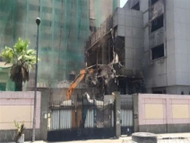 انهيار طابقين من مبنى الحزب الوطني أثناء عملية الهدم