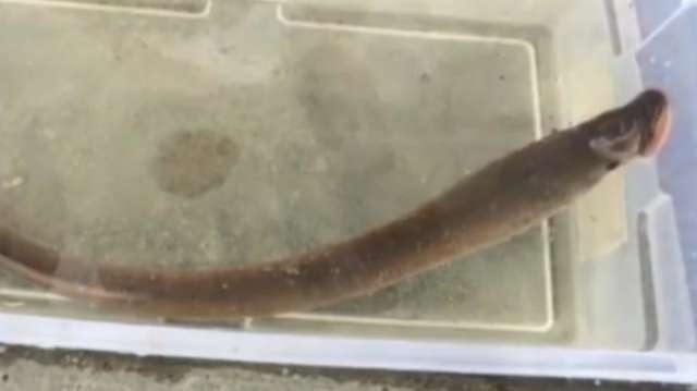 شاهد عدد من السكان في ولاية ألاسكا الأمريكية، أسماك غريبة الشكل سقطت من السماء، وتشبه تلك المخلوقات "حيوان الإنقليس البحري".