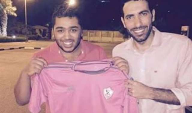 قام النجم محمد أبو تريكه لاعب الأهلي ومنتخب مصر السابق بالتقاط صورة مع أحد مشجعي الزمالك وهما يمسكان سويا بتي شيرت فريق الزمالك.