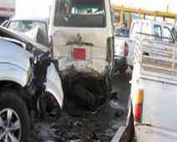 تصادم بين 4 سيارات وسقوط إحداها من أعلى الدائري
