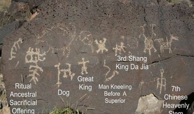 وعثر الباحثون الأمريكيون على رسوم توضيحية محفورة في الصخور تبدو أنها تنتمى للكتابة الصينية القديمة.