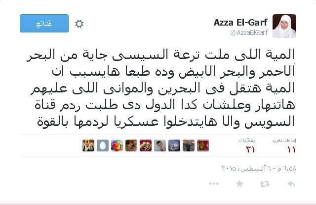 عزة الجرف تطالب بتدخل عسكرى لردم قناة السويس الجديدة