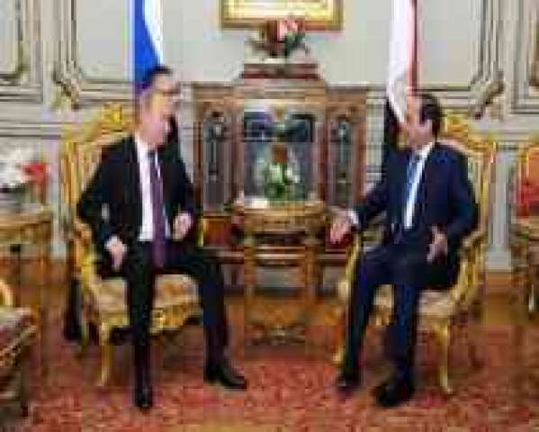 وتركزت المحادثات بين السيسي وميدفيديف على بحث سبل تفعيل التعاون الثنائي بين روسيا ومصر في مجالات الاقتصاد والتجارة، إلى جانب تبادل الآراء بشأ، أهم قضايا المنطقة العربية، وفي مقدمتها ضرورة تسوية النزاعات ومكافحة الإرهاب.