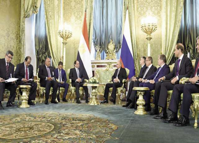 وأضاف أنه جرى حديث مفصل حول التعاون التجارى الذى طرأ عليه بعض التخفيض فى النصف الأول من هذه السنة بسبب تقلبات أسعار العملة والظروف الاقتصادية الصعبة، مستدركا: «اتفقنا مع الرئيس السيسى على تقليص تأثير هذه العوامل السلبية لتحقيق الاستقرار فى الحركة التجارية ومن الخطوات الملموسة التى اتفقنا عليها إمكانية إقامة منطقة تجارة حرة بيننا واستخدام العملة الوطنية وضخ الاستثمارات، وتعمل فى مصر أكثر من ٤٠٠ شركة روسية».