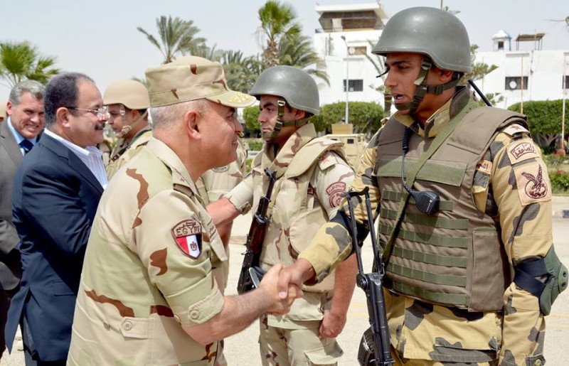 قام الفريق اول صدقى صبحى القائـد العـام للقـوات المسلحـة وزيـر الدفـاع والإنتـاج الحربي يرافقه اللواء مجدى عبد الغفار وزير الداخلية بتفقد عناصر قوات انفاذ القانون من ابطال القوات المسلحة والشرطة المتمركزه بشمال سيناء ، والتي نجحت خلال الفترة الماضية في فرض السيطرة الأمنية الكاملة بمناطق مكافحة النشاط الارهابي ، وتحقيق العديد من الضربات المتلاحقة للقضاء علي العناصر التكفيرية والاوكار والبؤر الارهابية التي تتحصن بها تلك العناصر .