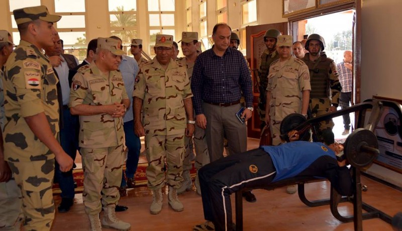 كما قام القائد العام بالمرور على الوحدات الادارية بقطاع تأمين شمال سيناء وإفتتاح الصالة الرياضية التى تضم عدد من الاجهزة الرياضية والتى تساعد على رفع الكفاءة البدنية ، كما افتتح القائد العام عدد من الملاعب الرياضية وكذا إفتتاح المسجد بعد تطويره وتوسعته .