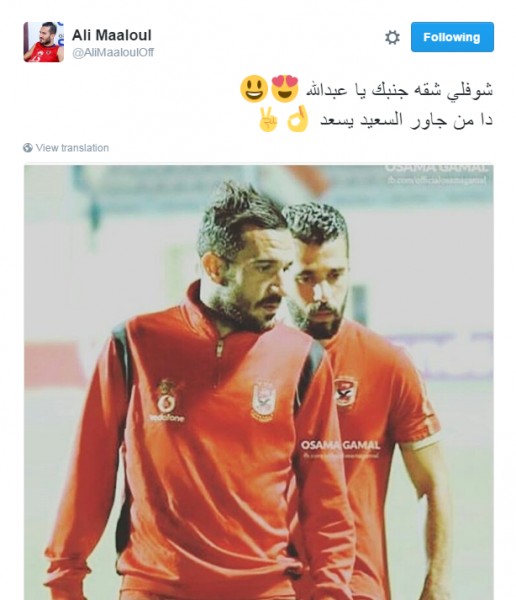ونشر معلول صورة تجمعه بالسعيد من مران الأهلى، عبر حسابه على موقع تويتر، وعلق قائلاً: "من جاور السعيد يسعد شوفلى شقة جنبك يا عبد الله"، وهى العبارة التى قالها المعلق الرياضى مدحت شلبى لعبد الله السعيد، بعد إحرازه الهدف الثانى فى مباراة مصر وغانا، الأحد الماضى.