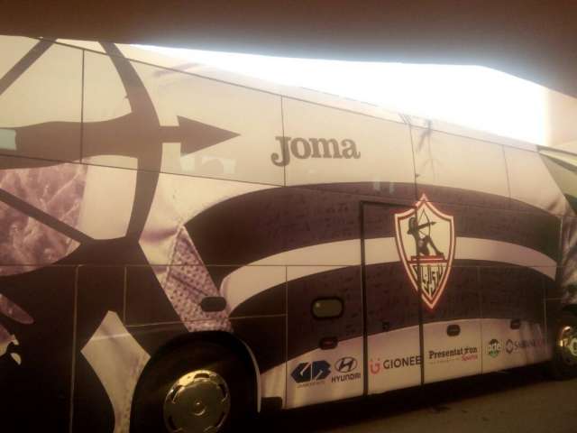 بينما توافد أتوبيس الزمالك، بمعدات المران، وينتظر اللاعبون قدوم باقى الفريق والجهاز الفنى