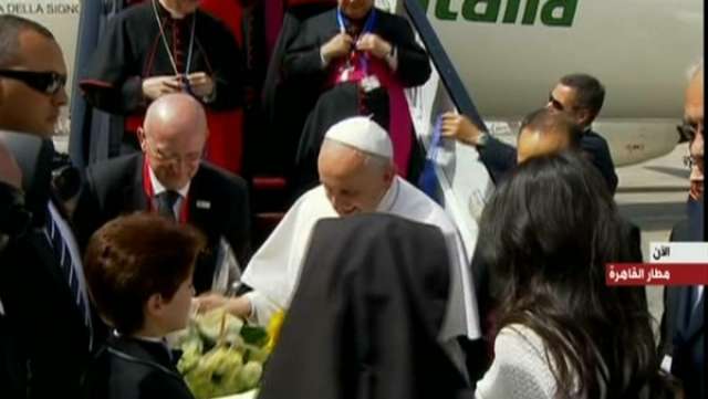 وقد وصل البابا فرانسيس بابا الفاتيكان إلي القاهرة منذ قليل،في زيارة تاريخية تمتد لمدة يومين.