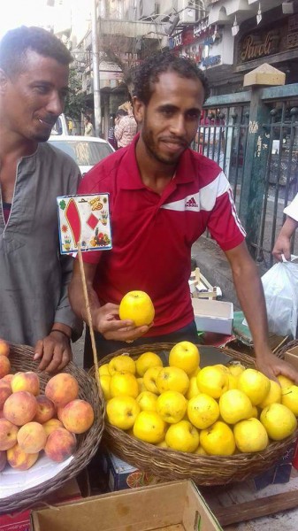 بالصور.. أفضل لاعب في العالم يبيع الفاكهة بميدان الجيزة