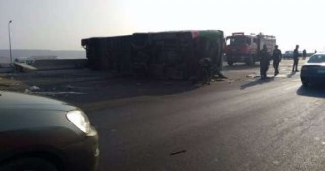 كما أصيب 6 أشخاص من أسرة واحدة فى حادث انقلاب سيارة ملاكي عقب دخولها بوابة الرسوم بمحافظة بنى سويف.