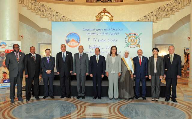 شهد الرئيس عبد الفتاح السيسى صباح اليوم، السبت، الاحتفالية التى نظمها الجهاز المركزى للتعبئة العامة والإحصاء، لإعلان نتائج تعداد سكان مصر لعام 2017، وذلك بحضور الدكتور علي عبد العال رئيس مجلس النواب، والمهندس شريف إسماعيل رئيس مجلس الوزراء، وعدد من والوزراء والمحافظين وكبار المسئولين، فضلاً عن رؤساء أجهزة تعداد السكان فى عدد من الدول، وممثلى المنظمات الإقليمية والدولية المعنية بالسكان.