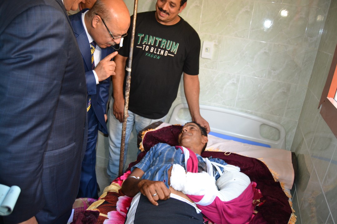 قرر اللواء احمد ضيف صقر محافظ الغربية المواطن ساهر محمد النجار بمستشفى المنشاوي العام بطنطا والذي أصيب أثناء عملة بمصنع تدوير القمامة بدفره للاطمئنان على صحتة والتاكد من توفير كافة الرعاية الصحية له .