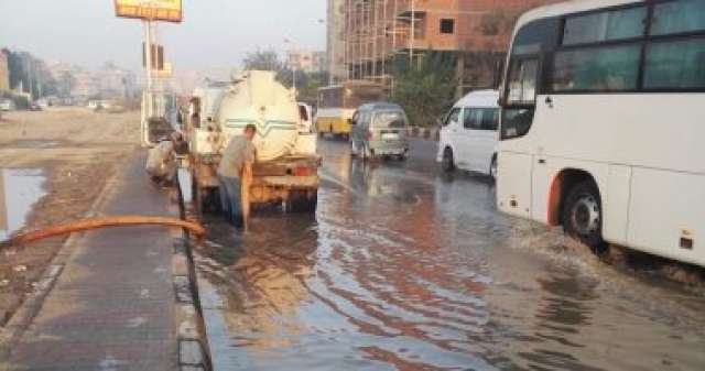 زحام مرورى بسبب كسر ماسورة مياه فى شارع جسر السويس
