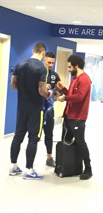 هداف البريميرليج«محمد صلاح».. يوقع للاعبى برايتون على قميص فريقهم