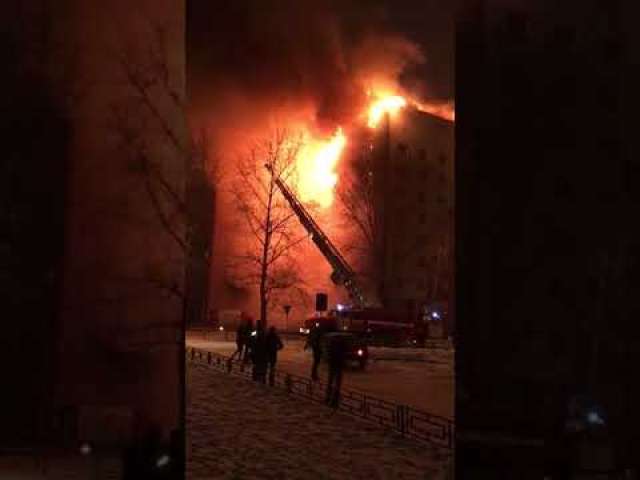 بالفيديو.. حريق ضخم فى مبنى سكنى بروسيا وإجلاء 130 شخصا