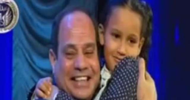 بادر الرئيس عبد الفتاح السيسى، بحمل أحد بنات الشهداء واحتضانها أثناء تسليمها وسام والدها الشهيد، مما لاقى تصفيق حاد من الحضور.