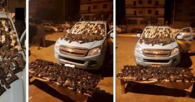 وقالت الداخلية، في بيان لها، إنه فى إطار جهود أجهزة البحث الجنائى بمديرية أمن الشرقية بالتنسيق مع قطاع الأمن العام لتحديد وضبط المتهمين المتورطين فى واقعة محاولة تهريب كمية كبيرة من الأسلحة النارية للبر الشرقى لقناة السويس ، بإستخدام سيارة ربع نقل ، حيث تم ضبطها بدائرة قسم شرطة الصالحية بالشرقية ، وعثر بداخلها على 2مخزن سرى أسفل صندوق السيارة بداخلهما " 111 قطعة سلاح نارى و256خزينة لأسلحة نارية ".