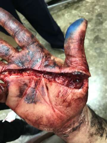 حيث استقبل قسم الاستقبال بمستشفى الطوارئ المريض تامر عبدالرازق جمعه من قرية شوشر المحلة بمحافظة الغربية واستقبله أطباء الطوارئ والإصابات وكانت حالته الصحية عبارة عن جرح قطعى وكسر عظمتى الساعد الأيسر وقطع أوتار وشرايين اليد اليسرى و جروح قطعية بجميع أجزاء جسمه وكانت أكثر الإصابات المؤثرة باليدين والمعصمين وعدد 2 جرح قطعى بالكتف