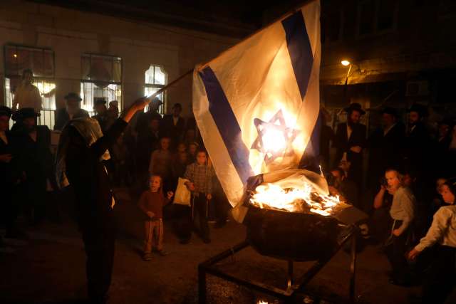 اليهود الأرثوذكس يحرقون علم إسرائيل فى حى ”مياشاريم” بالقدس المحتلة