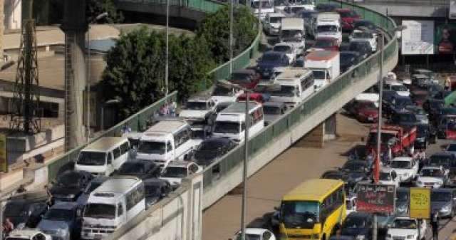 زحام مرورى إثر حادث تصادم سيارتين أعلى محور الثورة باتجاه كوبرى الجيش
