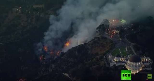 حريق هائل بالقرب من معلم هوليوود الشهير بلوس أنجلوس الأمريكية