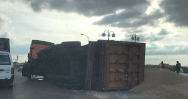 زحام مرورى بسبب سقوط حمولة مواد بناء من سيارة نقل فى مدينة نصر