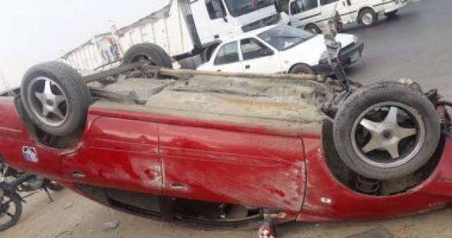 توقف حركة المرور بسبب انقلاب سيارة أعلى الطريق الإقليمى وإصابة 4 أشخاص