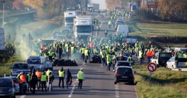 وقبل أسبوع تجمع آلاف المحتجين،الذين ليس لهم قائد وينظمون أنفسهم إلى حد بعيد عبر الانترنت ،فى باريس لأول مرة وحولوا شارع الشانزليزيه إلى ساحة قتال بعد اشتباكهم مع الشرطة التى استخدمت الغاز المسيل للدموع وخراطيم المياه.