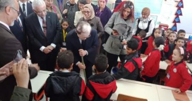 وحرص الدكتور طارق شوقى وزير التعليم والتعليم الفنى، والدكتورة سحر نصر وزيرة الاستثمار، على مجالسة الأطفال فى الفصول والاستماع لهم وعن يومهم الدراسى بالمدرسة.