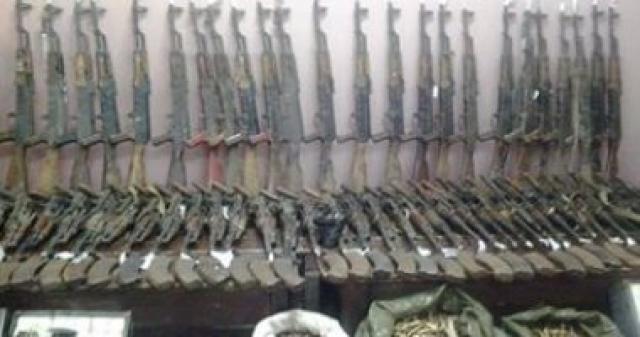 حيث تم ضبط 2 بندقية آلية "2" خزينة و"60" طلقة من ذات العيار، و6 بندقية خرطوش و15 فرد روسى و2 فرد خرطوش و"10" طلقات خرطوش وقطعتى سلاح أبيض بإجمالى 33 قطعة سلاح و70 طلقة متنوعة.