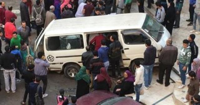 صور.. إصابة 8 أشخاص فى حادث اصطدام ميكروباص بعقار فى عزبة النخل