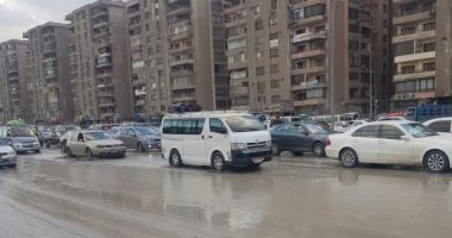 كثافات مرورية بسبب كسر ماسورة مياه بمحور اﻷوتوستراد