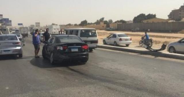 توقف حركة الطريق أعلى المقطم بسبب حادث تصادم 3 سيارات