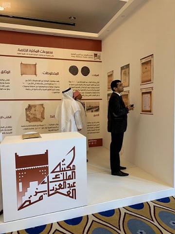 وقدمت المكتبة في جناحها خلال المؤتمر الذي ينظمه المركز الوطني للوثائق والمحفوظات بعنوان " دور الأرشيفات العربية في دعم مجتمع المعرفة العربي بين التحديات والتطلعات المستقبلية" نماذج من وثائق نادرة، وخرائط، ومجلات قديمة، وكتب نادرة، وصور، حيث تملك المكتبة (1800) وثيقة عن تاريخ المملكة، ومجموعة متميزة من بواكير الكتب العربية والنادرة التي تمت طباعتها في أوروبا، بالإضافة إلى مجموعات من المجلات العربية التي يعود تاريخ بعضها إلى العام 1860م، بالإضافة إلى ما يقرب من 123715 ألف وثيقة، وما يزيد على 31484 ألف من الكتب النادرة التي تفيد في حركة التأريخ الأدبي والعلمي والثقافي بوجه عام.
