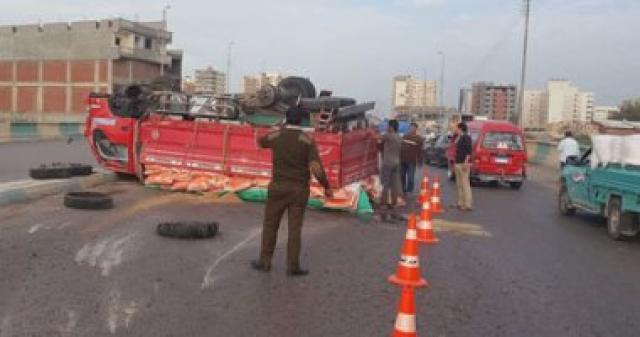 انقلاب مقطورة محملة بالأسمنت بالطريق الإقليمى فى الفيوم