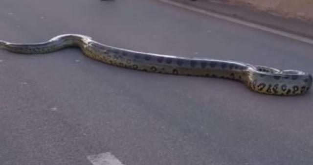 شاهد.. أناكوندا عملاق توقف حركة المرور فى ”بورتو فيلهو” البرازيلية