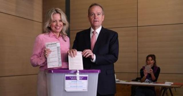 زعيم المعارضة الأسترالية بيل شورتن وزوجته كلوي يدليان بصوتهما