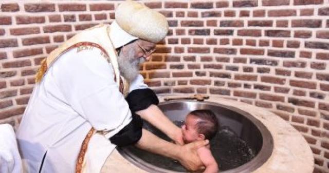 صور.. البابا تواضروس يعمد طفلين بقداس عيد دخول المسيح مصر بكنيسة أبو سرجة