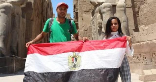 .jpg) الرحالة المغربي يمسك بعلم مصر بمعابد الأقصر الفرعونية