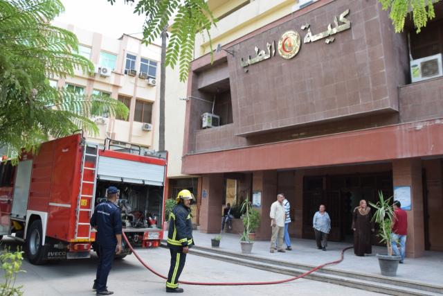 محاكاة لمكافحة حريق والاخلاء الآمن بكلية طب المنصورة